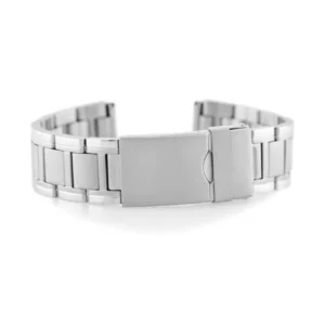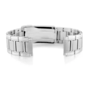 Tartós, polírozott fém óraszíj 20 mm-es rögzítéssel, amely könnyedén méretre szabható és biztonsági zárral védi órádat a lecsatolódástól. Kifinomult ezüst színével elegáns megjelenést kölcsönöz, ugyanakkor strapabíró és kényelmes viselet a mindennapokban.