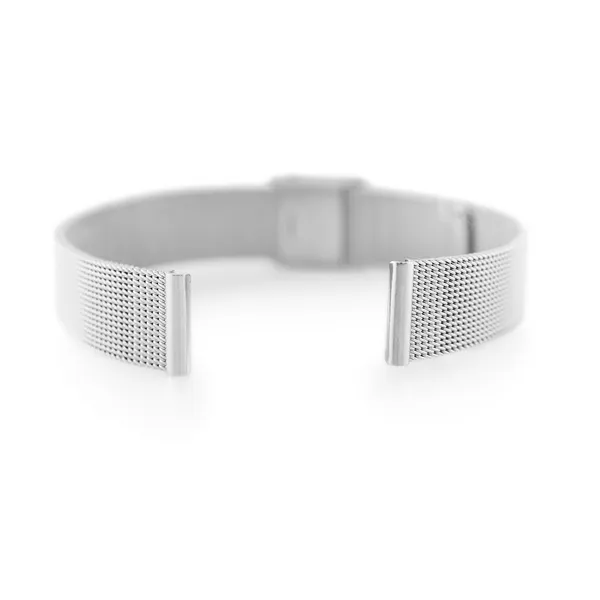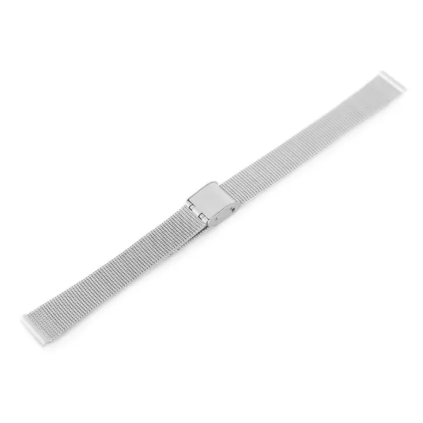 Elegáns, ezüst színű milánói hálós óraszíj, amely állítható hosszának köszönhetően kényelmesen illeszkedik a csuklóra. Tartós fém kialakítása stílusos megjelenést és megbízható mindennapi használatot kínál.