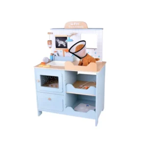 Fa állatorvosi rendelő gyerekeknek – igazi szerepjáték-élmény, ahol a kicsik gondoskodhatnak plüss pácienseikről. A részletgazdag rendelőben a gyermek eljátszhatja a vizsgálat, ápolás és gyógyítás lépéseit, miközben fejlődik az empátiája, felelősségérzete és a kommunikációja.