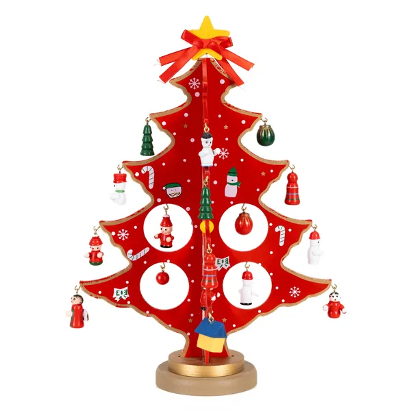 Fa asztali karácsonyfa 29 cm, 25 db akasztható dísz, színes