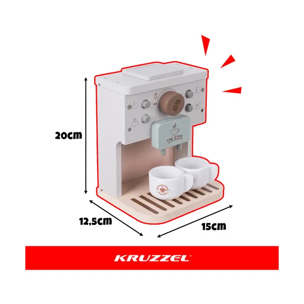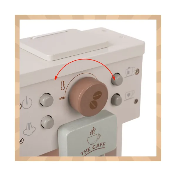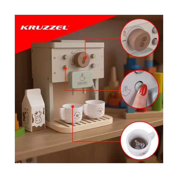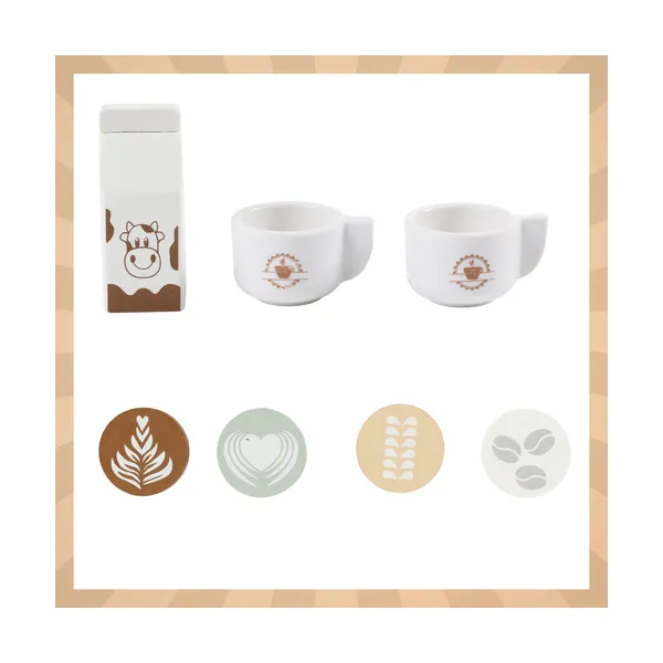 Szerepjátékhoz ideális fa játék kávéfőző, amellyel a gyerekek baristát és vendéglátót játszhatnak, miközben fejlődik a kreativitásuk és a finommotorikájuk. A csészékkel, kapszulákkal és „tejjel” sokféle játékhelyzetet teremt, így hosszabb ideig leköti őket otthon és közös játékban is.