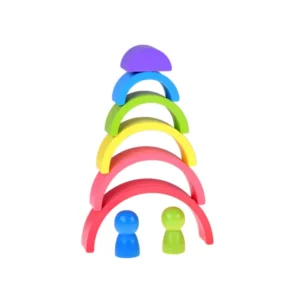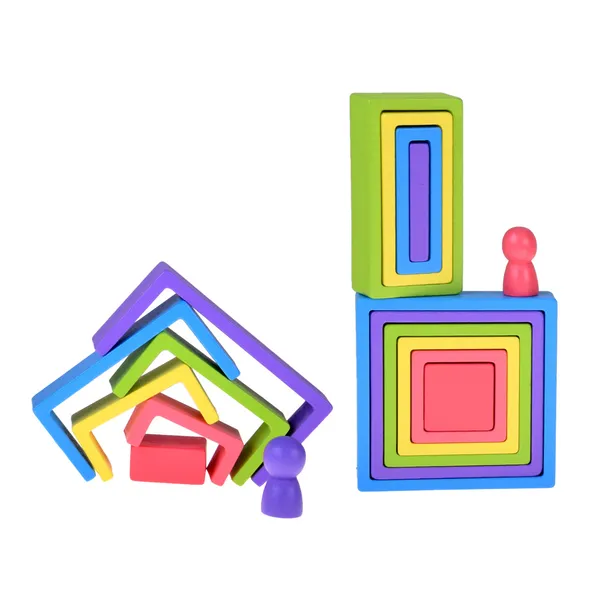 Ezzel a színes, fából készült Montessori kirakóval a gyerekek szabadon építhetnek tornyokat, házakat vagy bármilyen fantáziadús alkotást. A játék nyitott végű, így önálló felfedezésre ösztönöz, miközben fejleszti a finommotorikát, a térbeli tájékozódást és a logikus gondolkodást.