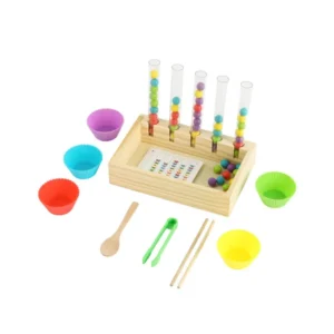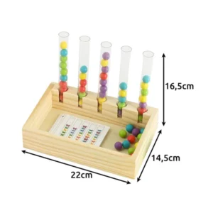 Fa Montessori válogató és számolós játék, amely játék közben támogatja a gyermek fejlődését: segít a színek megkülönböztetésében, a számolás elsajátításában és a kéz–szem koordináció fejlesztésében.