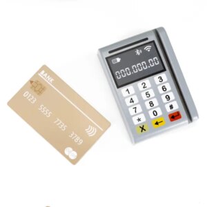 • A fa kártyaolvasó látványában élethű, dekoratív gombfestéssel készül, de nem működik valódi terminálként.