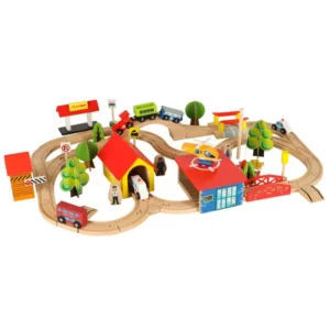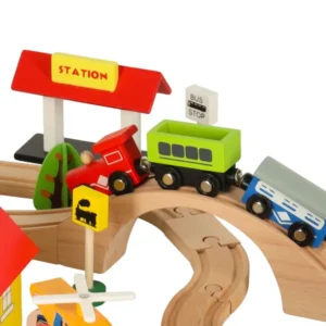 Engedjétek szabadjára a fantáziát a 69 részes, mágneses fa vonatkészlettel, amelyben mindent megtaláltok egy nyüzsgő miniváros felépítéséhez. A gondosan csiszolt fa elemek biztonságosak, tartósak, és örök élményt nyújtanak a gyerekeknek 3 éves kortól.
