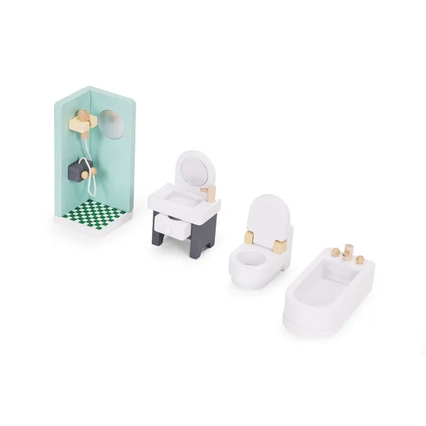 A 30 darabos, fából készült babaház bútor szett minden gyerekszobában gyors kedvenc lesz. A gondosan csiszolt, lekerekített élek és a tartós fa anyag 100 %-ban biztonságos játékot garantálnak a 3 éves vagy annál idősebb gyermekeknek.