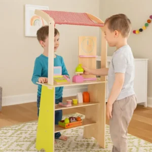 Akár otthoni nappaliban, akár óvodai csoportszobában állítod fel, ez a szolid fa stand órákon át leköti a gyerekeket. Rendeld meg, és teremtsd meg a saját kis piac hangulatát!