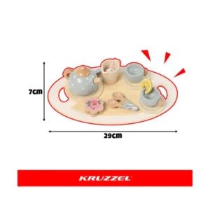 A simára csiszolt elemek kellemes tapintásúak, a gondos kidolgozás pedig ideálissá teszi a mindennapi játékhoz. A teáskanna emelése, a „tea” kitöltése, a csészék és kanalak megfogása közben finomodnak a kézmozdulatok és fejlődik a szem–kéz koordináció.