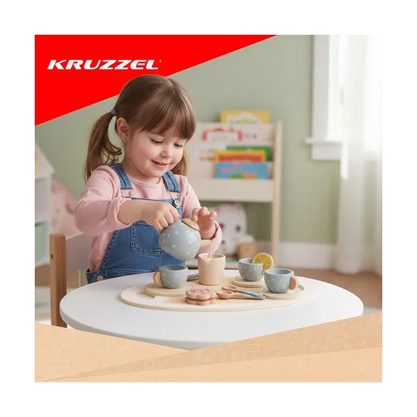Terítsétek meg a képzeletbeli teadélutánt: ez a fából készült, szürke gyerek teaszett kedves, modern megjelenésével és valósághű kiegészítőivel hosszú időre leköti a kicsiket. A szerepjáték közben a gyermek utánozhatja a felnőtteket, vendégeket „hívhat”, és játékosan gyakorolhatja az udvarias kiszolgálást – mindezt meleg, otthonos hangulatban.