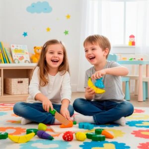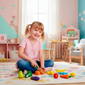 Fából készült vágható gyümölcs és zöldség készlet – igazi szerepjáték élmény a konyhában! A darabok tépőzárral kapcsolódnak, így a gyermek „felszeletelheti”, majd újra összeillesztheti őket. Vágáskor a tépőzár jellegzetes hangja még valósághűbbé teszi a játékot.