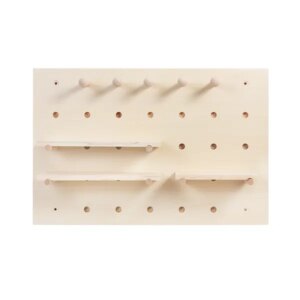 A 40×60 cm-es fa fali panel 3 polccal és 5 akasztóval akár 20 kg-ot is elbír, így rendezetté és áttekinthetővé teszi a konyhát, irodát vagy műhelyt. A variálható elrendezésnek köszönhetően mindent saját igényeid szerint helyezhetsz el, miközben a natúr fa elegánsan mutat.