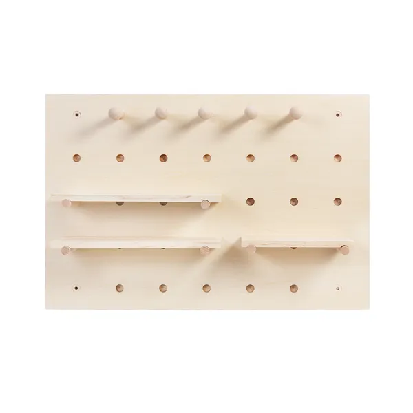 Fali fa rendszerező tábla 40×60 cm, 3 polccal, 5 akasztóval, 20 kg teherbírás