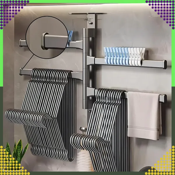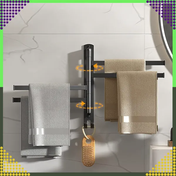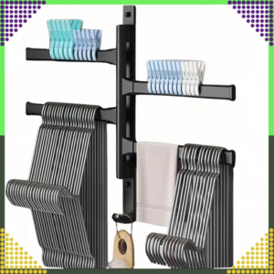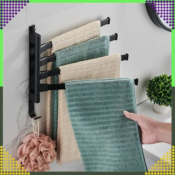 Az alumínium, 4 karos forgatható törölközőtartó helyet szabadít fel a falon, miközben gyorsabban száradnak a textíliák. Az extra alsó akasztó és a rozsdamentes, matt fekete felület modern megjelenést és tartósságot visz a fürdőszobába vagy konyhába.