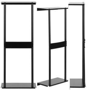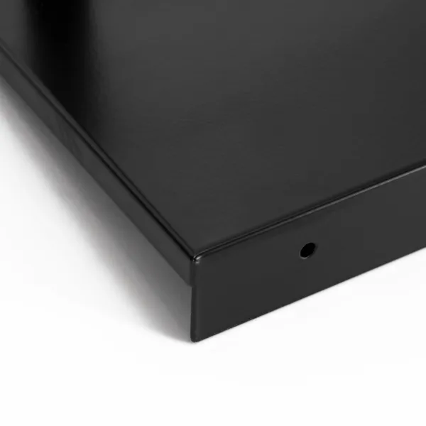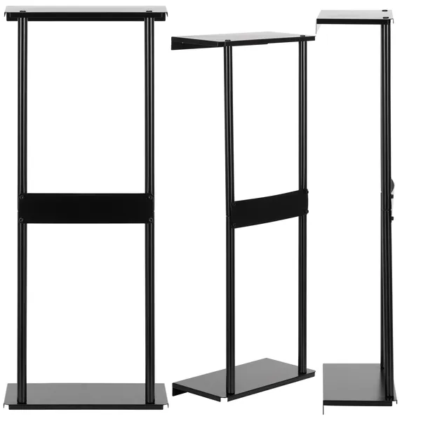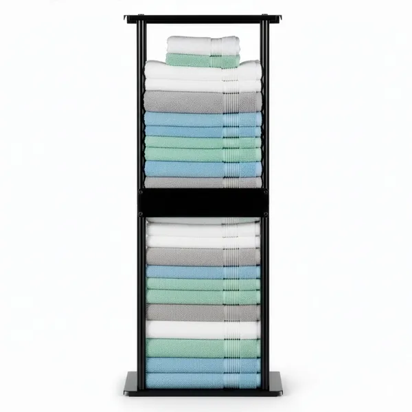 Rendszerezze a fürdőszobát egy fali törölközőtartóval, amely két polcával a törölközők és kisebb kiegészítők kényelmes tárolását is megoldja. A matt fekete fém kivitel modern, a falra rögzíthető kialakítás pedig helyet spórol és megkönnyíti a takarítást.