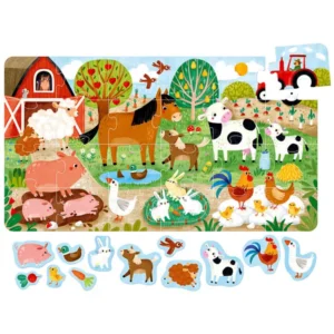 A 24 darabos, óriás falusi állatkirakó játékosan fejleszti a finommotorikát, a megfigyelést és a szókincset, miközben közös, nevetéssel teli perceket biztosít a családnak.