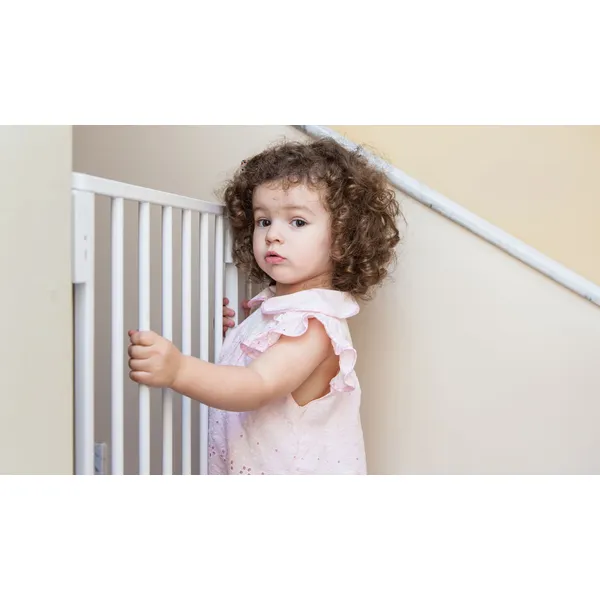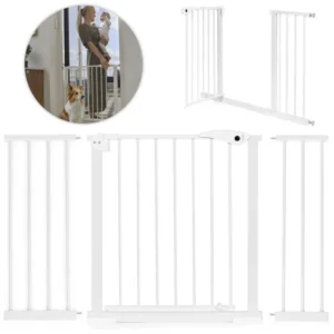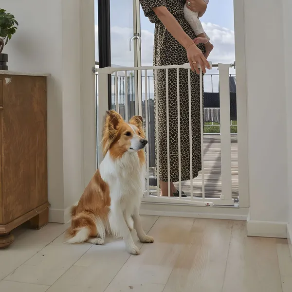A 56 cm-es átjáró szélesség bőséges mozgásteret biztosít, miközben a 77 cm magas keret elegendő akadályt jelent a kicsiknek és a kis- és közepes testű kutyáknak. A letisztult fehér szín minden enteriőrbe illik, legyen szó modern vagy klasszikus otthonról.