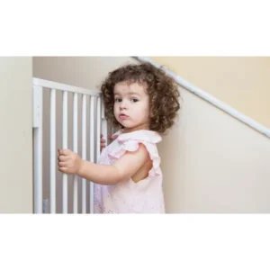 Az állítható (74–132 cm) acél biztonsági rács fúrás nélkül építhető be, és automatikusan visszazáródik, így egyetlen mozdulattal elszigetelheti a veszélyes területeket. Kétirányú nyitása, gyermekbiztos zárja és a falat kímélő rögzítőbetétek garantálják a kényelmet és a nyugalmat.