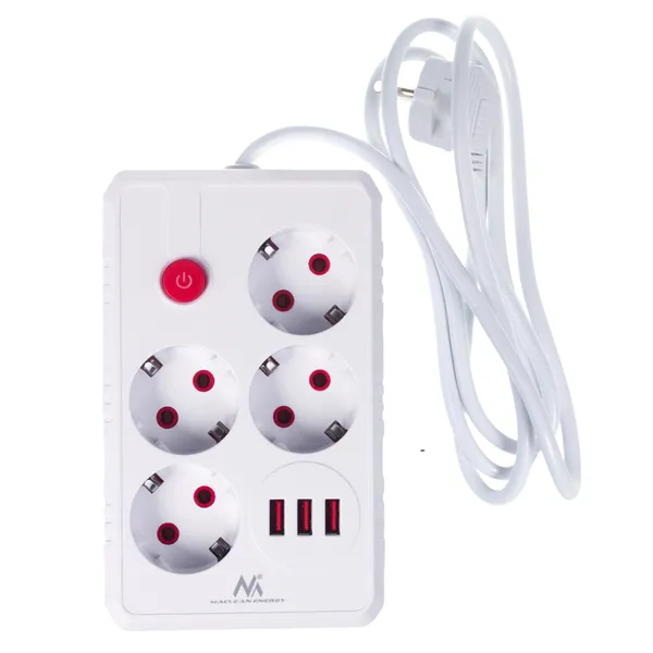 Sok eszközt kell egyszerre árammal ellátnod? A 4 földelt dugaljas, 3 USB-portos Maclean MCE392 elosztóval laptopot, monitort, okostelefont és headsetet tölthetsz egyetlen fali konnektorról, rendezetten és biztonságosan.
