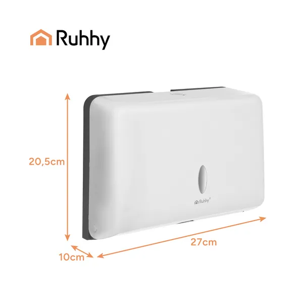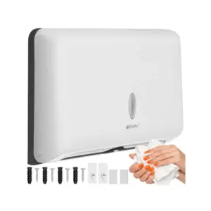 Fehér, falra szerelhető papírtörlő-adagoló ZZ hajtogatott kéztörlőkhöz, amely segít rendezetten és higiénikusan tárolni a papírtörlőket. Praktikus megoldás otthonra, irodába, mosdóba, konyhába vagy kisebb vendéglátóhelyekre, ahol fontos a tiszta megjelenés és a gyors hozzáférés.