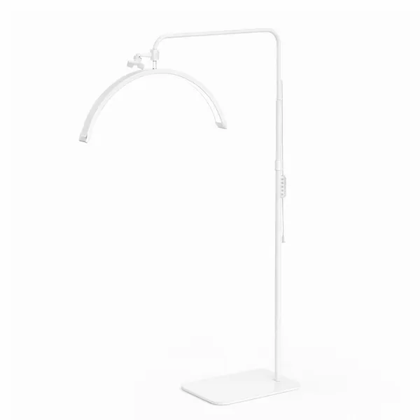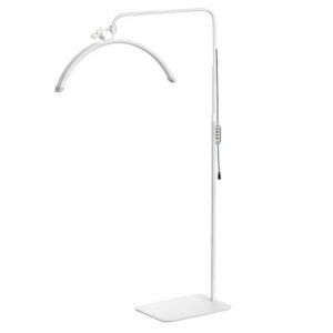 Fehér félhold alakú kozmetikai állólámpa, amely ideális szépségszalonokba, kozmetikai kezelőhelyiségekbe és minden olyan munkához, ahol egyenletes, pontos megvilágításra van szükség. A 40 W teljesítményű, 320 LED-pontos világítás magas, RA>95 CRI értékkel segíti a színek hű visszaadását, ezért kiváló választás sminkhez, szempilla- és szemöldökstylinghoz, valamint precíz munkafolyamatokhoz.