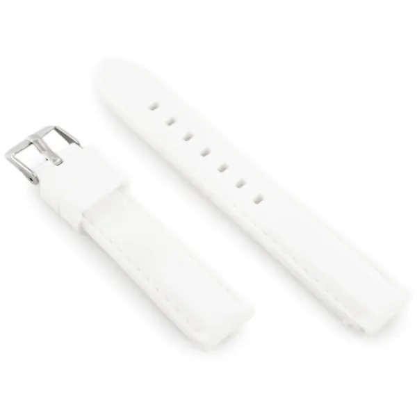 Kényelmes, fehér gumióraszíj mindennapi viselethez, amely 20 mm-es csatlakozással és ezüstszínű csattal biztosít stabil rögzítést. Tartós anyaga és letisztult megjelenése praktikus választás sportos és hétköznapi órákhoz is.