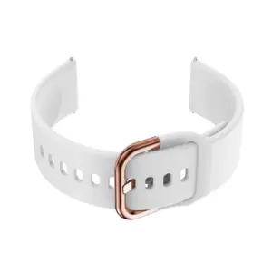 Fehér színű gumiszíj okosórához, elegáns rózsaarany színű fém csattal. Kényelmes viselet a mindennapokra, sportos és letisztult megjelenéssel.