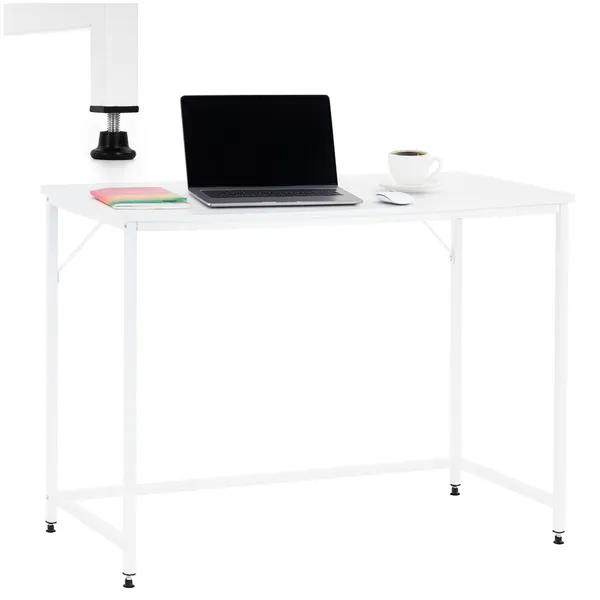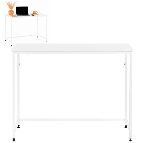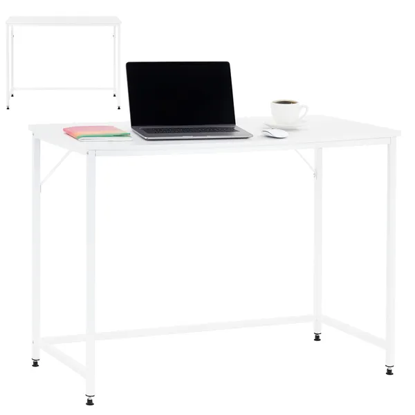 Fehér íróasztal 100×50×76 cm, fém vázzal, MDF lap, állítható lábakkal