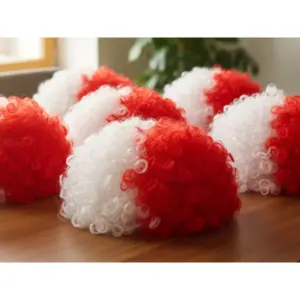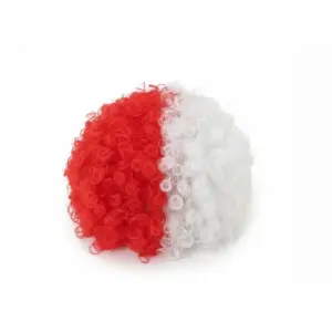 Fehér-piros göndör afro szurkolói paróka, amellyel azonnal kitűnsz a lelátón, a szurkolói zónában vagy otthoni meccsnézés közben. A két élénk szín és a karakteres, göndör frizura erősíti a hangulatot, és látványosan jelzi, hogy szurkolóként érkeztél.