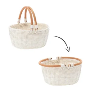 Stílusos, fehér rattan kosár, amelyben rendezetten tarthatod a fürdőszobai apróságokat, konyhai fűszereket vagy a gyerekszoba játékait. Könnyű, tartós, fogantyúinak köszönhetően egyszerűen áthelyezhető, így egy mozdulattal teremthetsz átlátható rendet.
