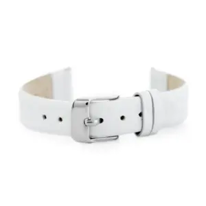 Fehér színű, természetes bőrből készült óraszíj ezüstszínű fém csattal. Kényelmes választás a karóra megújításához, elegáns és letisztult megjelenéssel a mindennapi viselethez.
