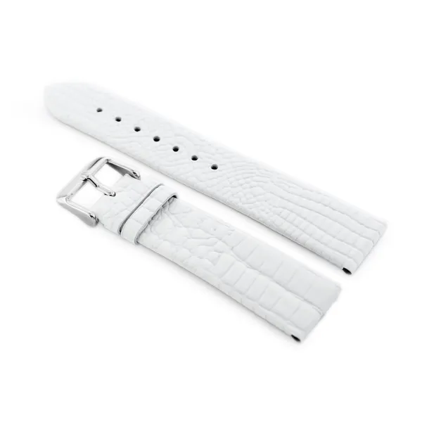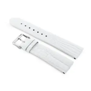 Fehér színű, természetes bőrből készült óraszíj, elegáns ezüstszínű fém csattal. Kényelmes választás a mindennapi viselethez, ha klasszikus megjelenésű, 22 mm-es óraszíjat keres.