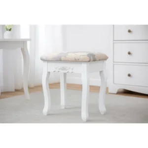 Varázsolj otthonodba nosztalgikus eleganciát ezzel a fehér vintage zsámollyal, amely ideális fésülködőasztal mellé, előszobába vagy a nappaliba.