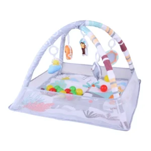 Fejlesztő játszószőnyeg babáknak 0 hó+, levehető ívekkel, hálós fallal és 12 labdával