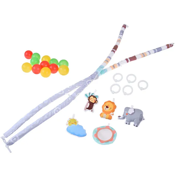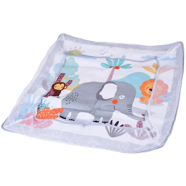 Puhán párnázott, hálós oldalfalú fejlesztő játszószőnyeg, amelyben a labdák és játékok nem gurulnak szét. A levehető íveken lógó játékok és a 12 színes labda segítik az érzékszervi fejlődést, és játék közben mozgásra ösztönzik a babát már újszülöttkortól.
