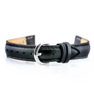 Puha, fekete valódi bőr óraszíj 12 mm-es csatlakozással, amely rozsdamentes acél csatjának és 7 fokozatú állíthatóságának köszönhetően kényelmes és tartós. Cserélje le elhasználódott szíját percek alatt, és adjon új stílust órájának.