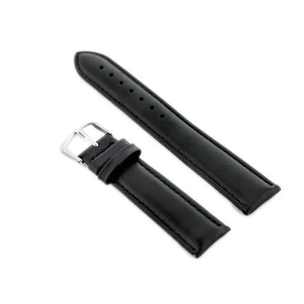 Fekete 24 mm valódi bőr óraszíj W83L, ezüst csattal