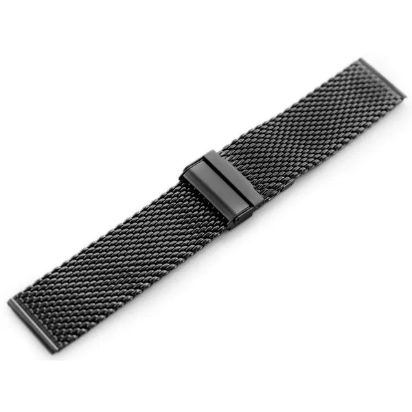 Kiváló minőségű, fekete színű acél milánói hálós óraszíj, amely elegáns megjelenést és kényelmes viseletet kínál a mindennapokban.