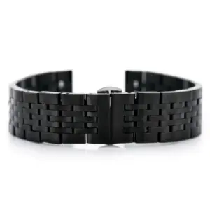 Fekete színű, acél óraszíj pillangócsattal, igényes kivitelű karórákhoz.