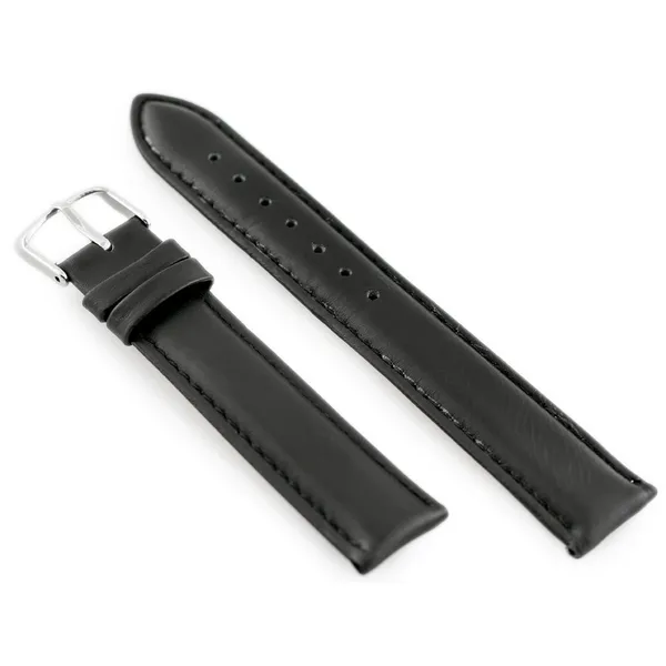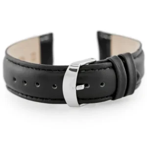 A prémium minőségű, fekete, természetes bőrből készült karóra-szíj elegáns megjelenést és kényelmes viseletet biztosít mindennapjai során. A fekete tűzéssel és fényes, ezüstszínű fém csattal ellátott pánt egyszerre modern és időtálló kiegészítő, amely könnyedén illeszkedik a legtöbb 20 mm szélességű tokfüllel rendelkező órához.