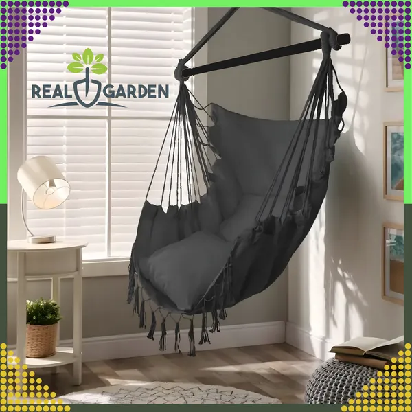 Tipp: rögzítsd erős mennyezeti kampóhoz, gerendához vagy stabil állványhoz, és élvezd a kedvenc könyvedet vagy hűsítő italodat ebben a stílusos függőfotelben.