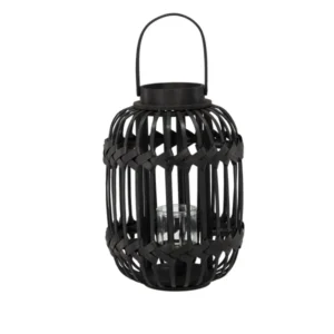Porfestett fekete fém lámpás üvegfalakkal, amely meleg, romantikus fényt varázsol otthonába vagy teraszára. Tartós kivitele és praktikus akasztója gondtalan használatot garantál évekig.