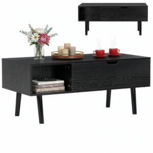 Emelhető, előretolható asztallapjával kényelmesen használható kanapénál étkezéshez vagy laptophoz, majd visszazárva rendezett marad a nappali. A belső tároló és a nyitott polcok elnyelik a távirányítókat, újságokat és apróságokat, a csúszásgátló talpak pedig stabilitást adnak.