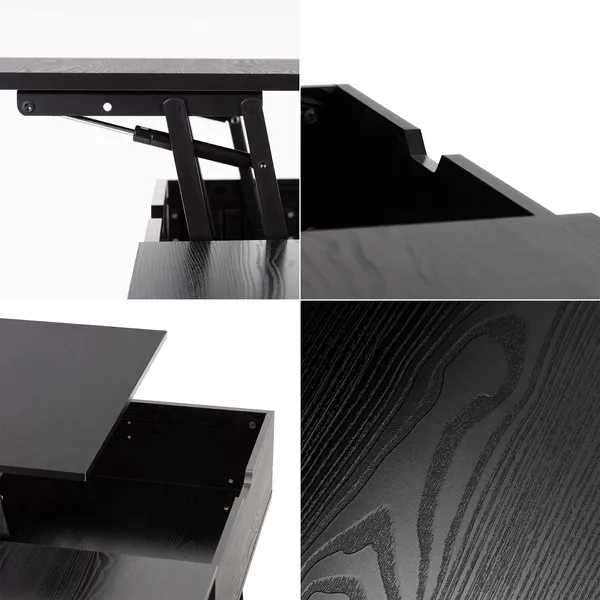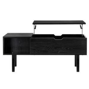Fekete emelhető tetejű dohányzóasztal tárolóval 100×50×43 cm