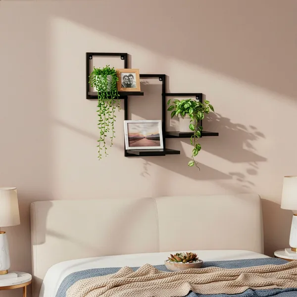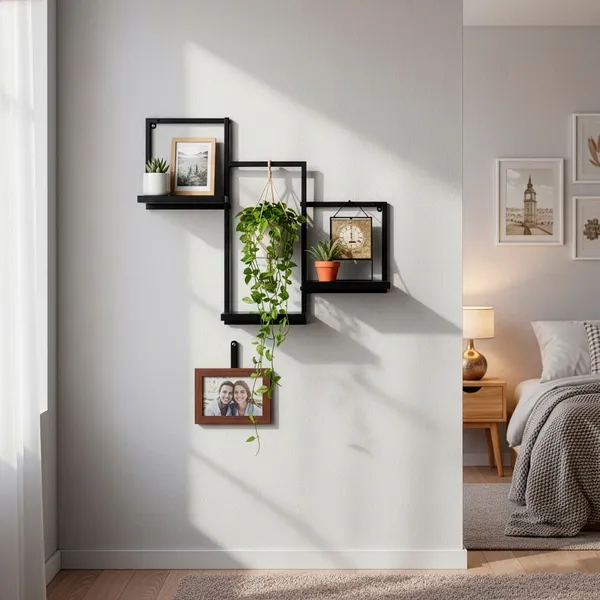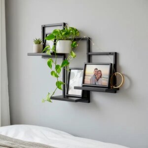 Modern, praktikus fali polc szett – fekete színben, fém vázzal és MDF polclapokkal. Ideális előszobába, nappaliba, hálószobába vagy dolgozósarokba: rendszerezéshez, dísztárgyakhoz és mindennapi apróságokhoz.