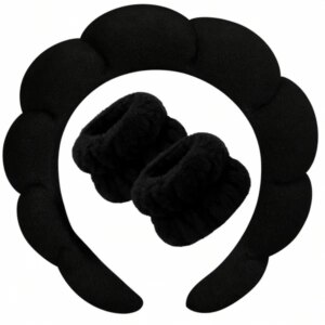A fejpánt és csuklópánt szett praktikus társ a napi arctisztítás, sminkelés vagy spa-percek során. A puha, rugalmas textil kíméletes a bőrhöz és a hajhoz, mégis stabilan a helyén marad, így a víz és a kozmetikumok nem jutnak a hajtövekre vagy a ruhára.