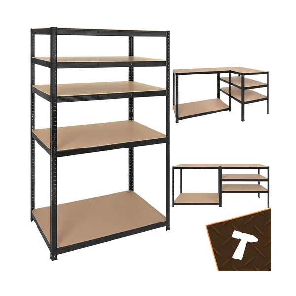 Praktikus, strapabíró raktári polc otthonra, garázsba, műhelybe vagy kamrába. A masszív fém kialakítás stabil tárolóhelyet ad, segít rendet teremteni, és átláthatóvá teszi a dobozok, szerszámok, háztartási kellékek vagy élelmiszerkészletek elhelyezését. Fekete színe modern, letisztult megjelenést biztosít.