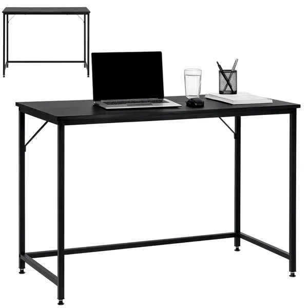 Fekete fémvázas MDF íróasztal, 100×50×76 cm, állítható lábakkal