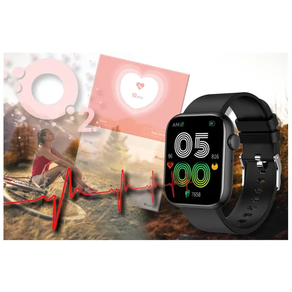 Ez a fekete, téglalap alakú férfi okosóra praktikus választás a mindennapokra, ha fontos a kényelmes híváskezelés, az aktivitáskövetés és az egészségi adatok figyelése. A 1,85 hüvelykes TFT érintőkijelző jól áttekinthető, a Bluetooth kapcsolatnak köszönhetően pedig könnyedén összepárosítható a telefonjával.