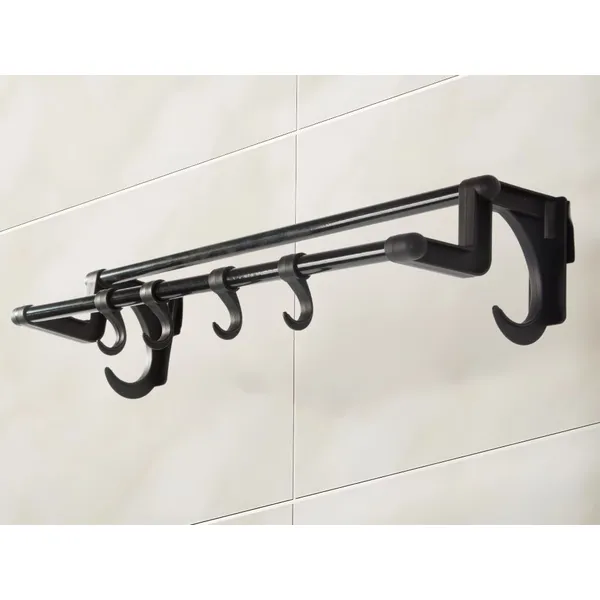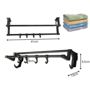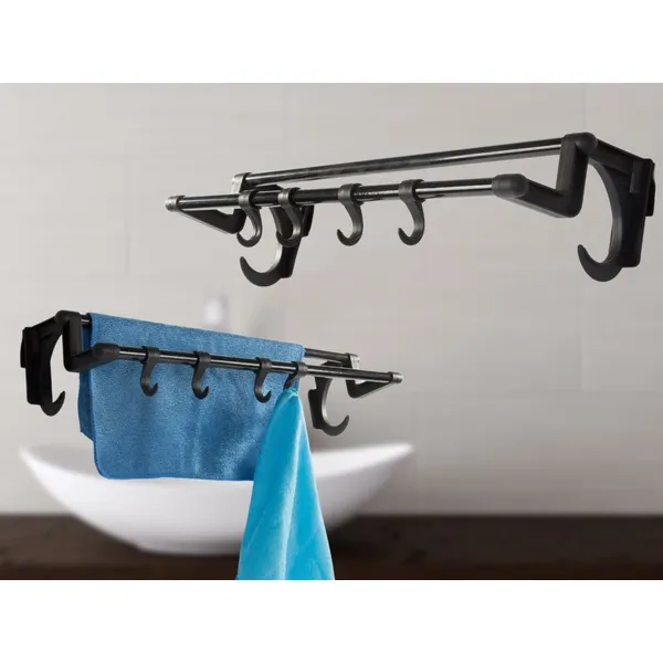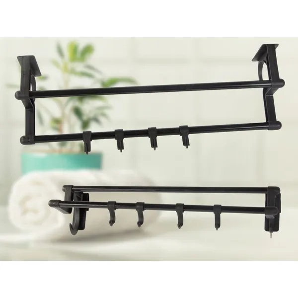 Fekete, fúrás nélküli 40 cm-es törölközőtartó 4 kampóval