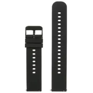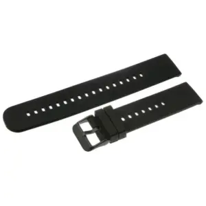 Fekete színű gumi óraszíj, amely kényelmes viseletet és letisztult megjelenést kínál a mindennapokra.